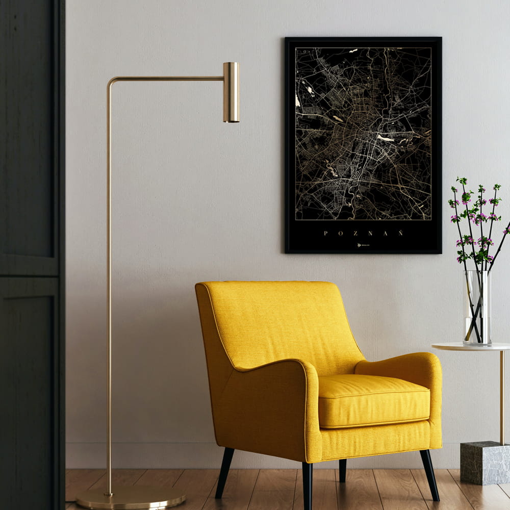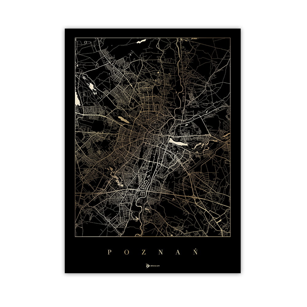 Czarno złoty plakat Poznania zachwyca swoim designem i nowoczesnością, obrazując detale rzek czy też terenów zielonych. Jest pięknym miastem Polski z charakterystycznym renesansowym ratuszem i efektownymi uliczkami! Mogłeś wiele o nim słyszeć, ale nie znasz go pewnie jeszcze od strony mapy przeglądowej.
