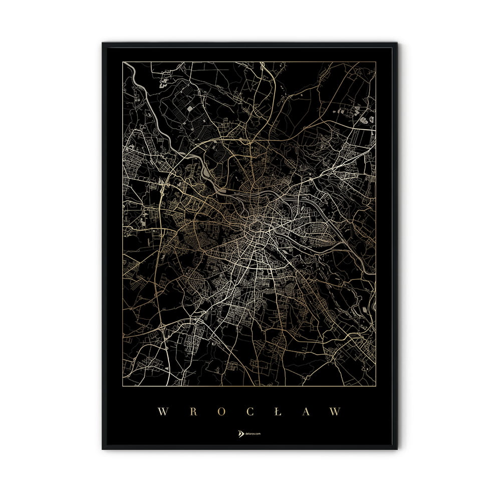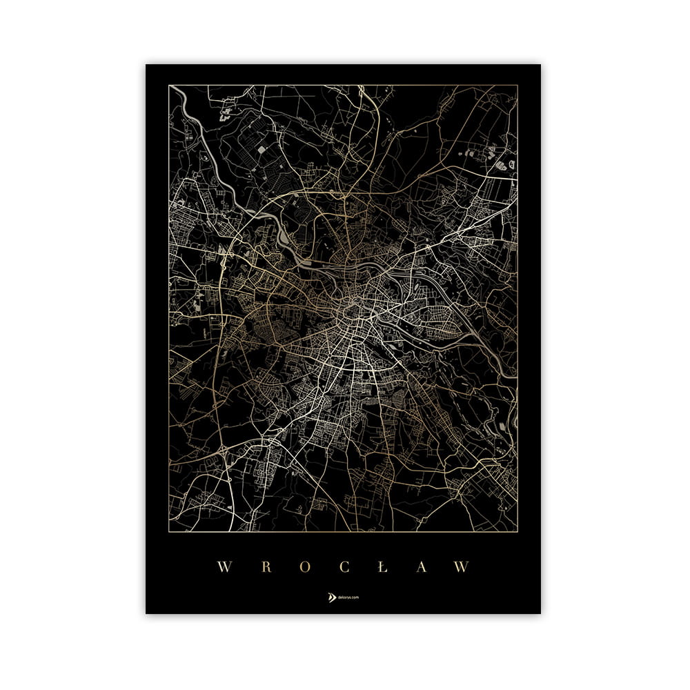 Czarno złoty plakat Wrocławia zachwyca swoim połyskiem. Wrocław należy do głównych miejsc w Polsce w dziedzinie sztuki i kultury! Mogłeś o nim wiele słyszeć, ale nie znasz go pewnie jeszcze od strony mapy przeglądowej. Taka dekoracja ścienna wpasuje się w każde nowoczesne wnętrze!